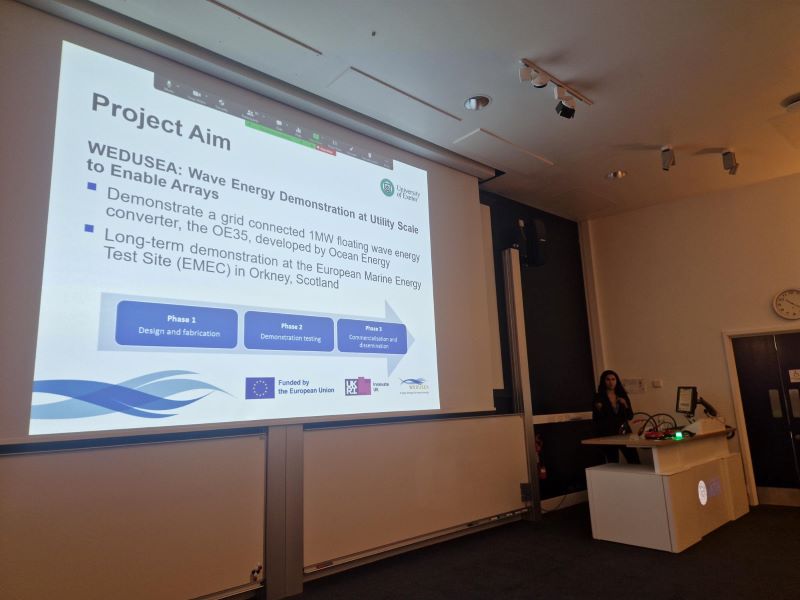 - Project partner University of Exeter made a presentation about the WEDUSEA project on 28th June at the PRIMaRE conference at the University of Bath. The presentation was made by Dr Faryal Khalid and the title was ‘WEDUSEA – Designing a large-scale wave energy converter for field demonstration.’