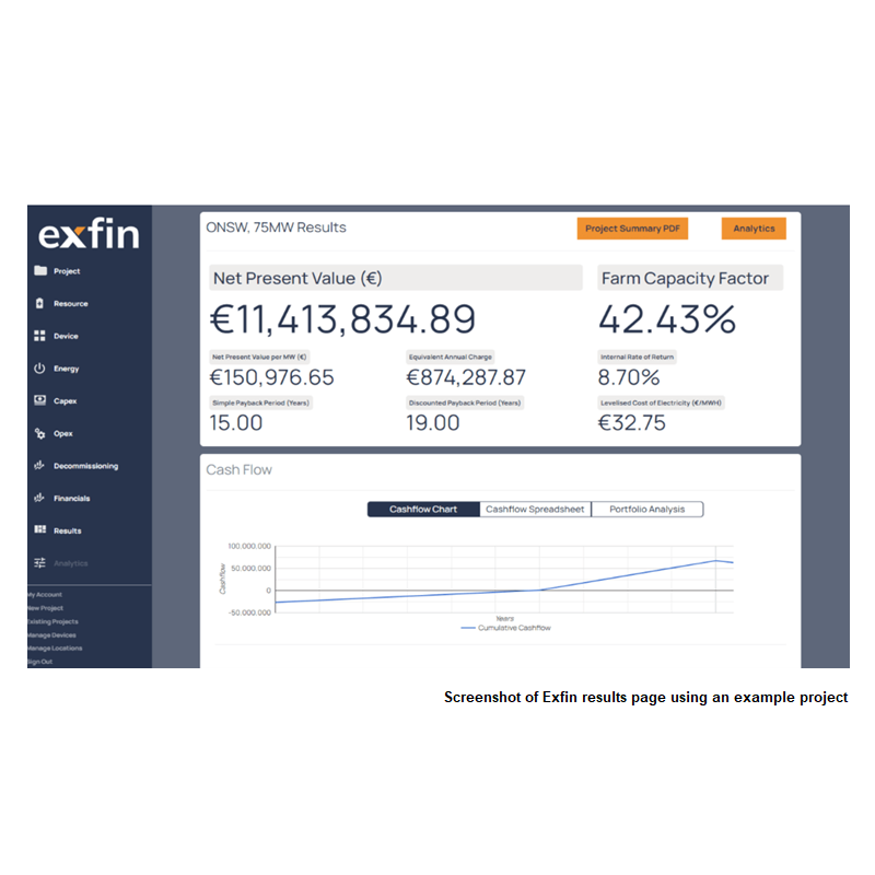 Exceedence is proud to bring our business intelligence and cloud-based software platform, Exfin, to the WEDUSEA project. Our aim is to present an independent, robust, and credible pathway for reducing costs specifically tailored to the OE buoy. We will quantify the impact of each innovation in the project through the reduction in LCOE. Throughout the project, we will diligently validate, verify, and support optioneering solutions, effectively translating the ambitious targets mentioned above into actionable insights based on financial key performance indicators (KPIs). Additionally, our software’s capability to analyse multiple scenarios empowers us to generate financial plans that help quantify, compare, and differentiate both technical and financial risks.